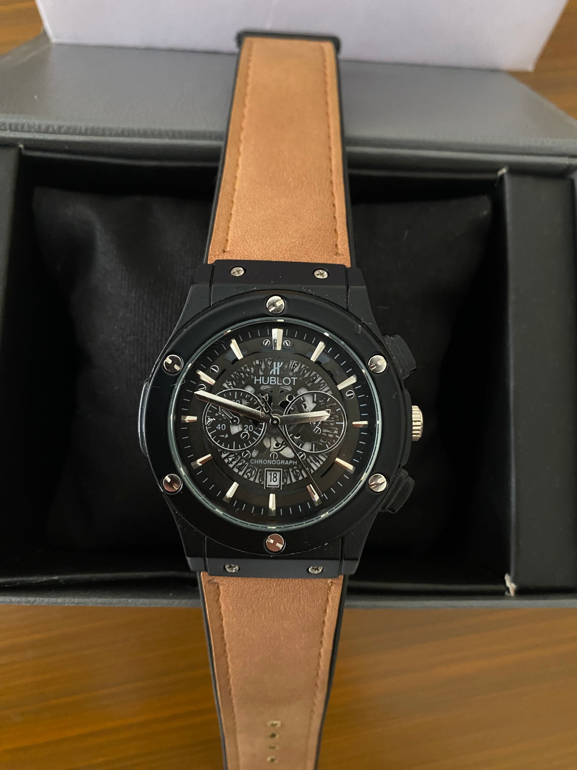 - Strap☑️: High-quality brown leather strap for comfort and a refined contrast against the black case