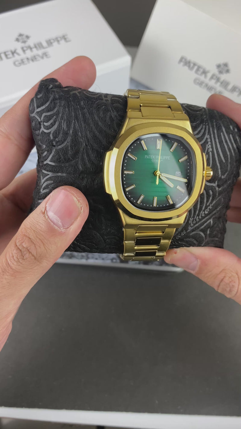 Bold yet refined, the PTK Phillipe Green Dial features a rich emerald-green textured dial paired with a striking gold-tone case and bracelet. Designed to stand out with elegance, this timepiece delivers luxury, confidence, and timeless appeal.